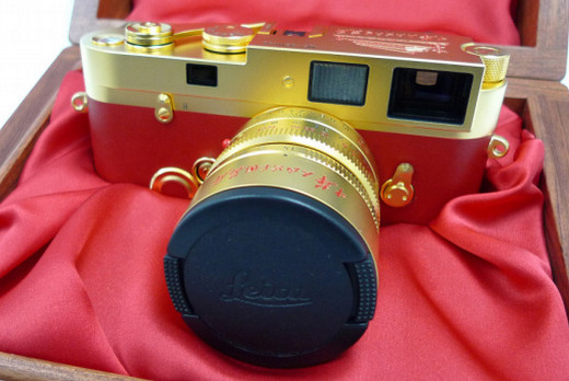 徕卡、镀金、红色小牛皮。天安门、毛体字「中华人民共和国万岁」x 2、「中华人民共和国成立六十周年 1949~2009」。搭配同样「金」装版的 Summilux-M 50mm f/1.4 镜头,限量 61 台(代表 1949~2009,每台上面都有编号),售价人民币 199,990。
