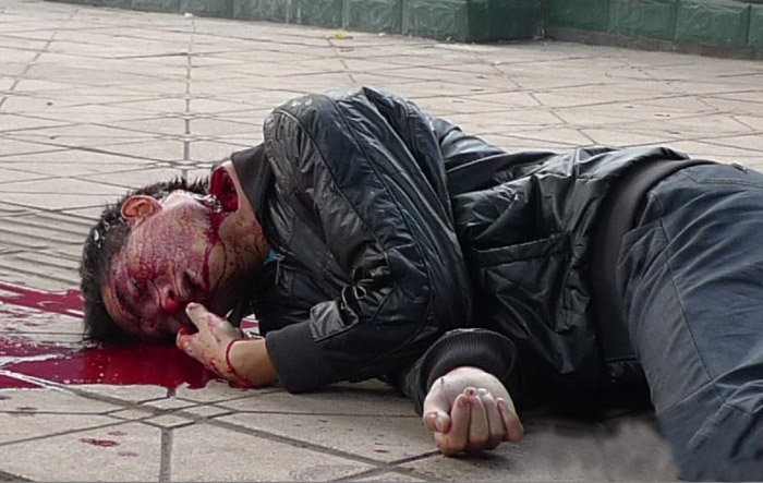 今天(2010.12.2)下午一点过左右,江北生活广场川南医院对门,一男子被当街追砍,当场死亡。