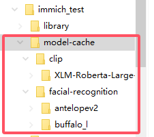 创建一个用于存放immich数据的文件夹,其中包括“library”、“postgres”、“model-cache”三个文件夹。